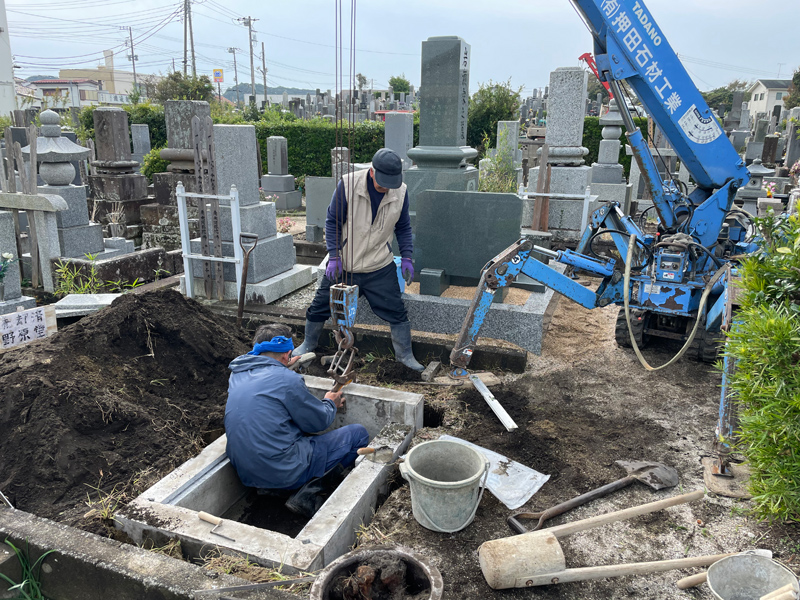 基礎工事・周囲土留・納骨室・石碑・外柵等の工事を行います。